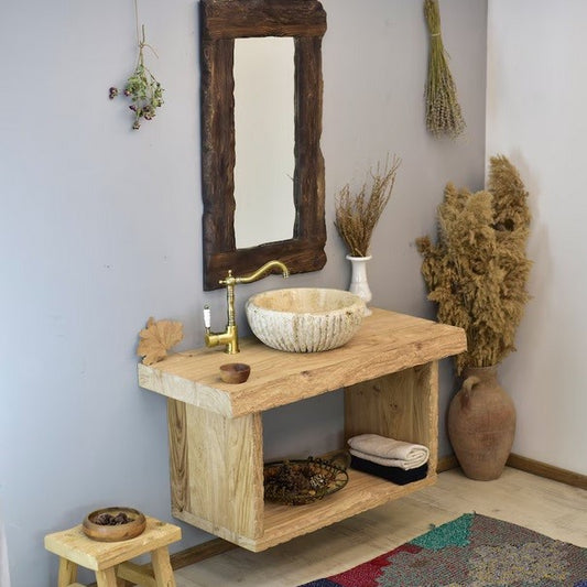 Handmade Rustic Bathroom Vanity, Reclaimed Wood Solid Bathroom Vanity, Handcrafted Live Edge