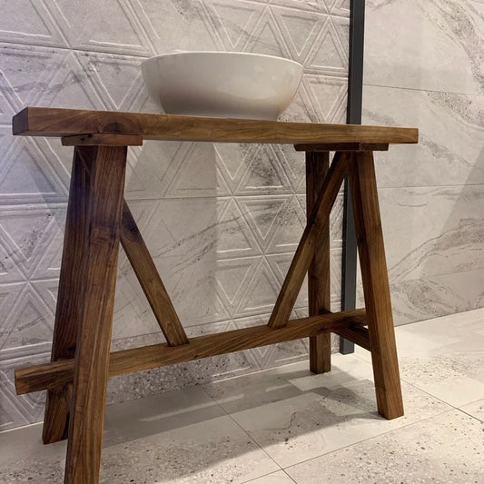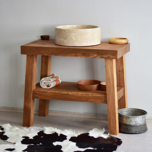 Bathroom Vanity, Walnut Solid Wood Bathroom Vanity, Farmhouse Modern Rustic Wood Decor, Counter Top Wood Table