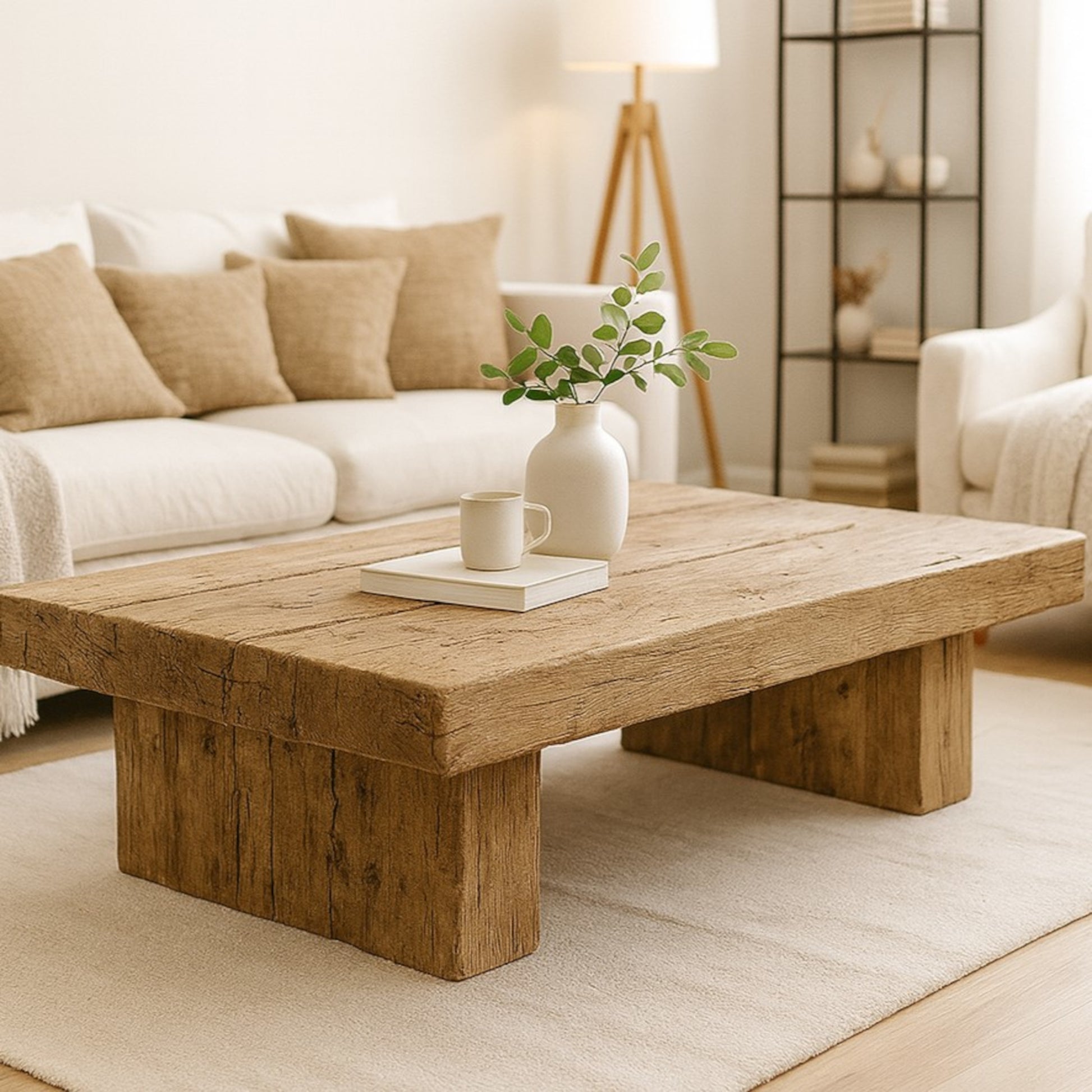 For a more traditional look, you can choose from our rectangular wooden tables, or for a sleek, contemporary feel, a square wooden coffee table would be a perfect fit. If you prefer a bolder statement, an wooden slab coffee table or a round solid wood table, which blends rustic appeal with modern elegance, will surely be an excellent choice.