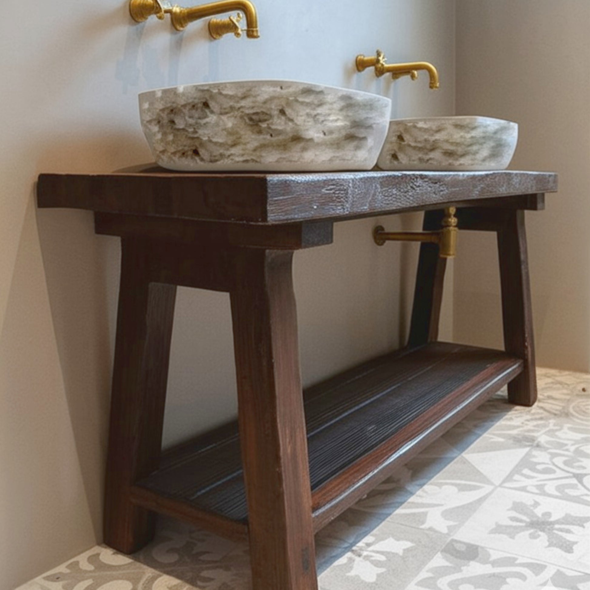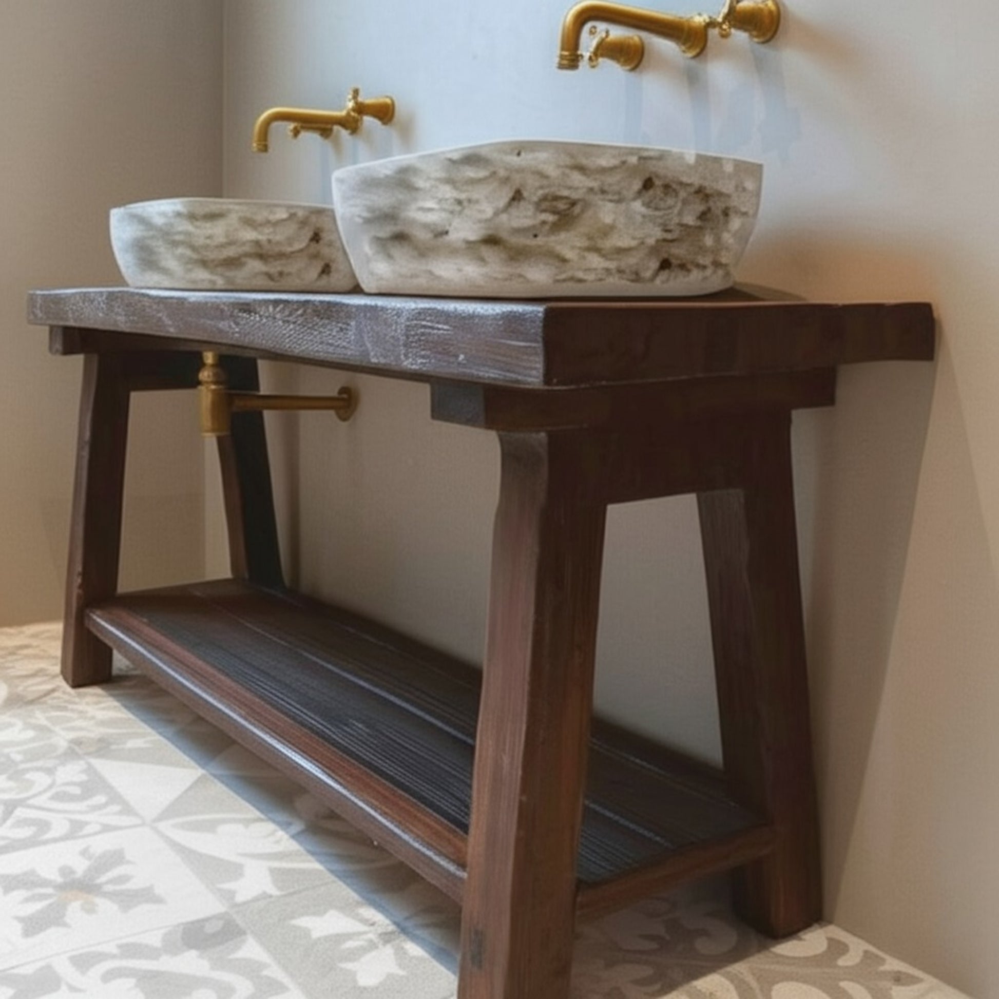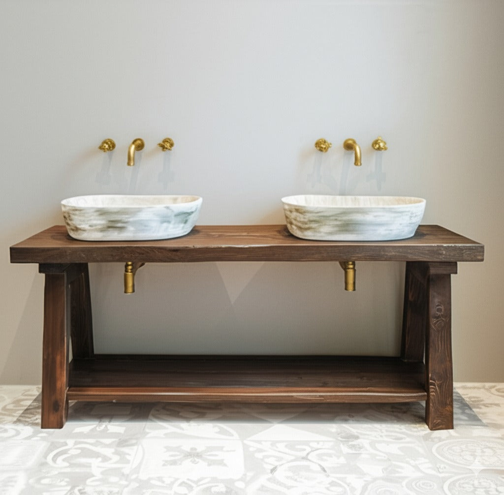 Bring timeless charm and durability into your home with our Wood Bathroom Vanity, handcrafted from Rustic Solid Wood. Each piece is built with care using natural wood, ensuring authentic grain patterns, knots, and textures that make every vanity truly one-of-a-kind.