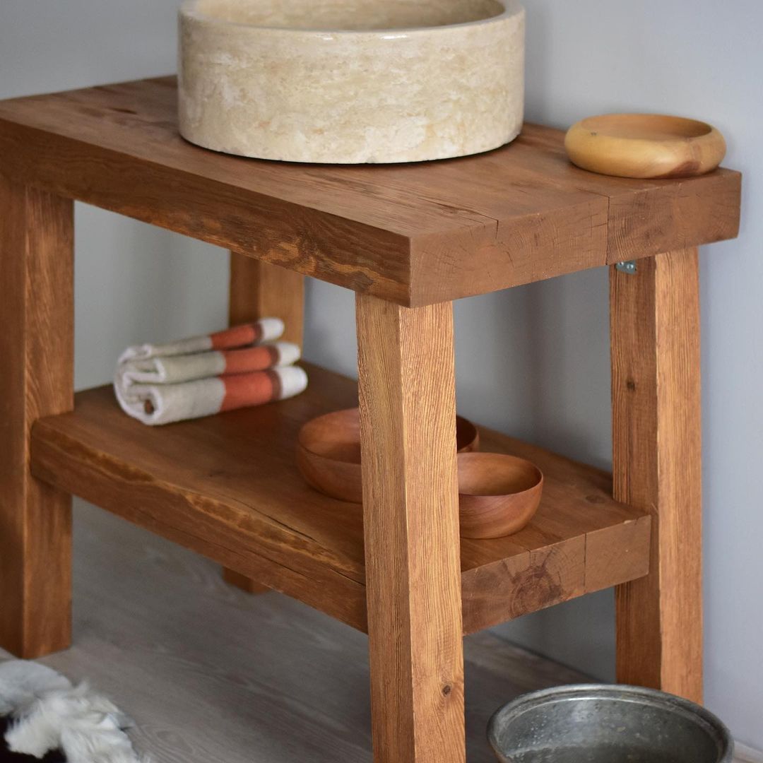 Our Reclaimed Wood Bathroom Vanities are designed to combine functionality with style, offering spacious storage and a warm rustic character. The distressed wood finish highlights the natural beauty of the material, while maintaining the strength and durability you expect from real wood furniture.