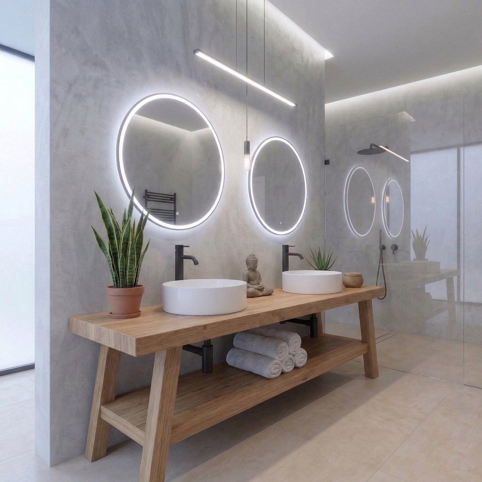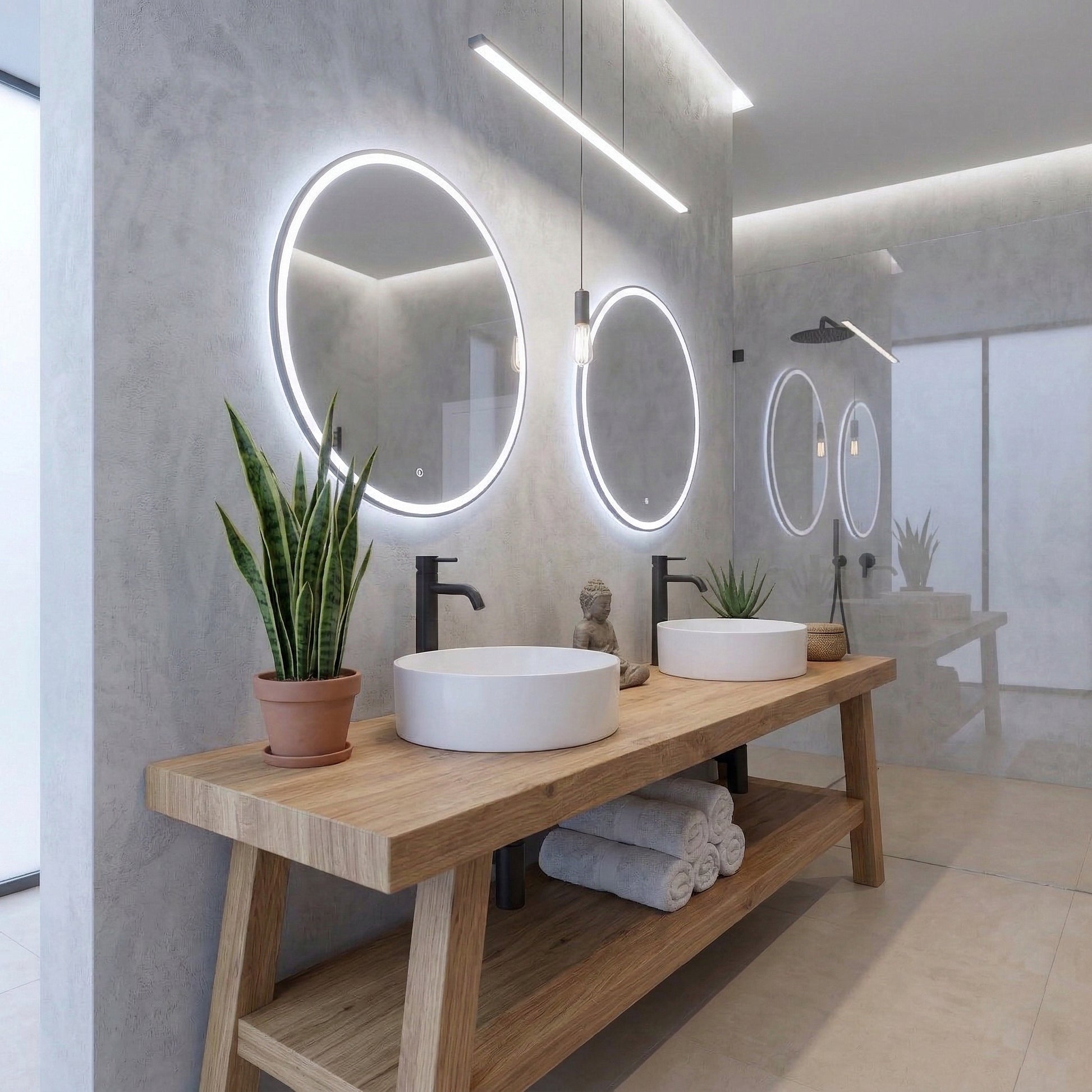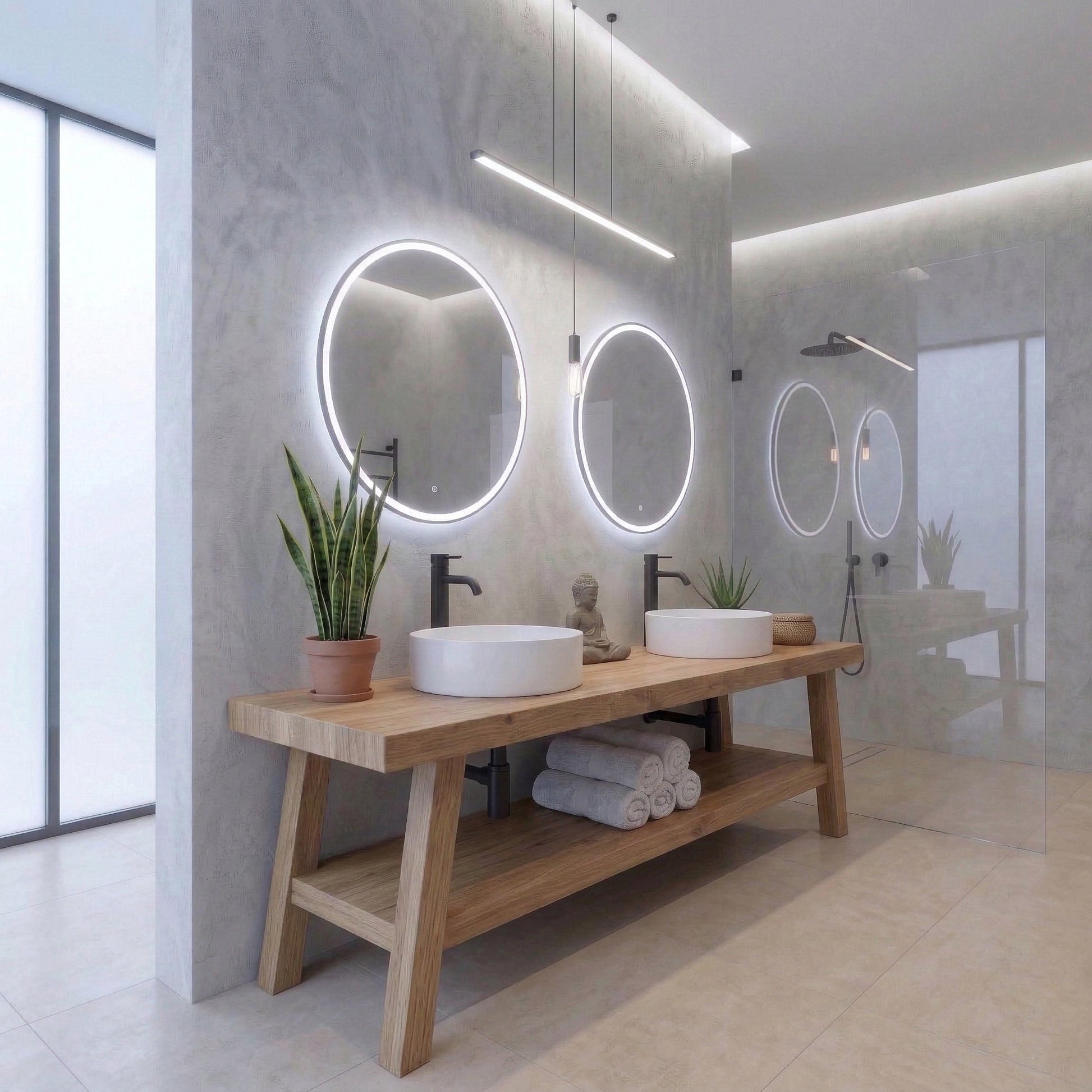 Open Shelf Design: The spacious bottom shelf is perfect for displaying plush towels or decorative baskets, enhancing the organic modern look of your bathroom.