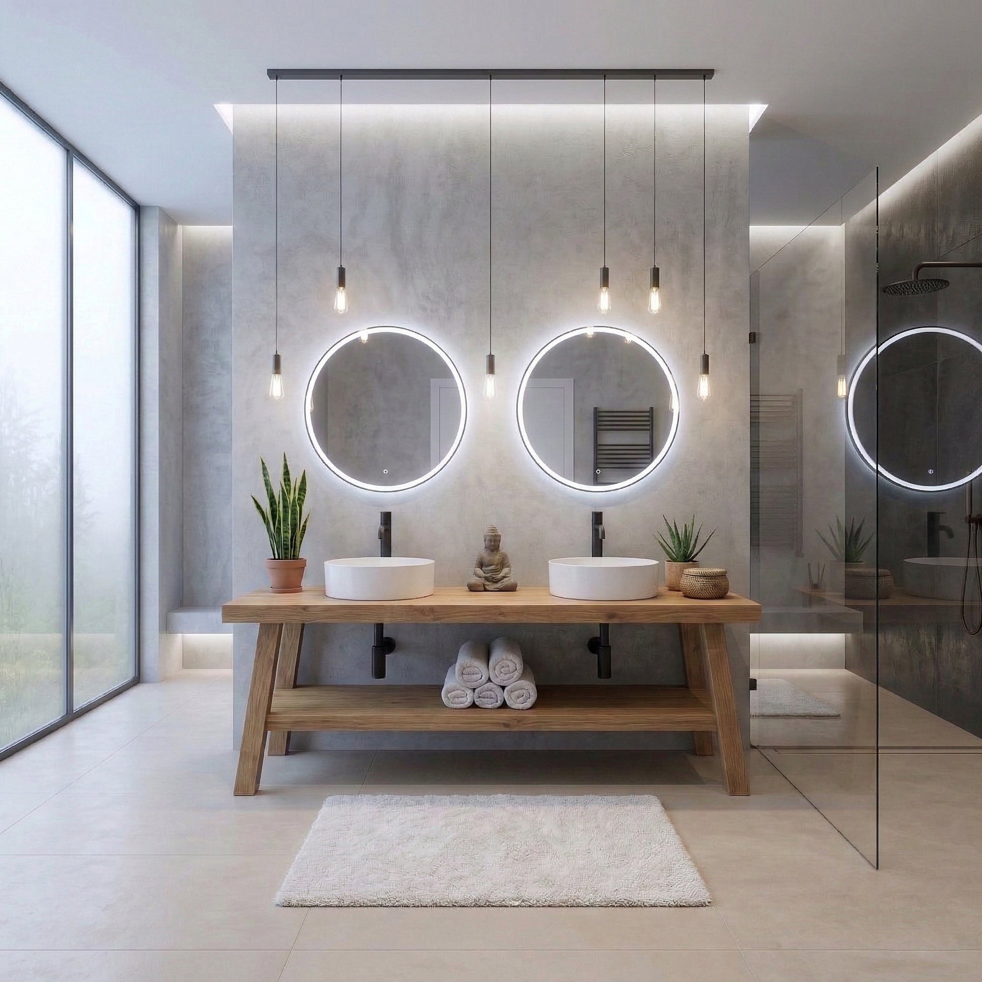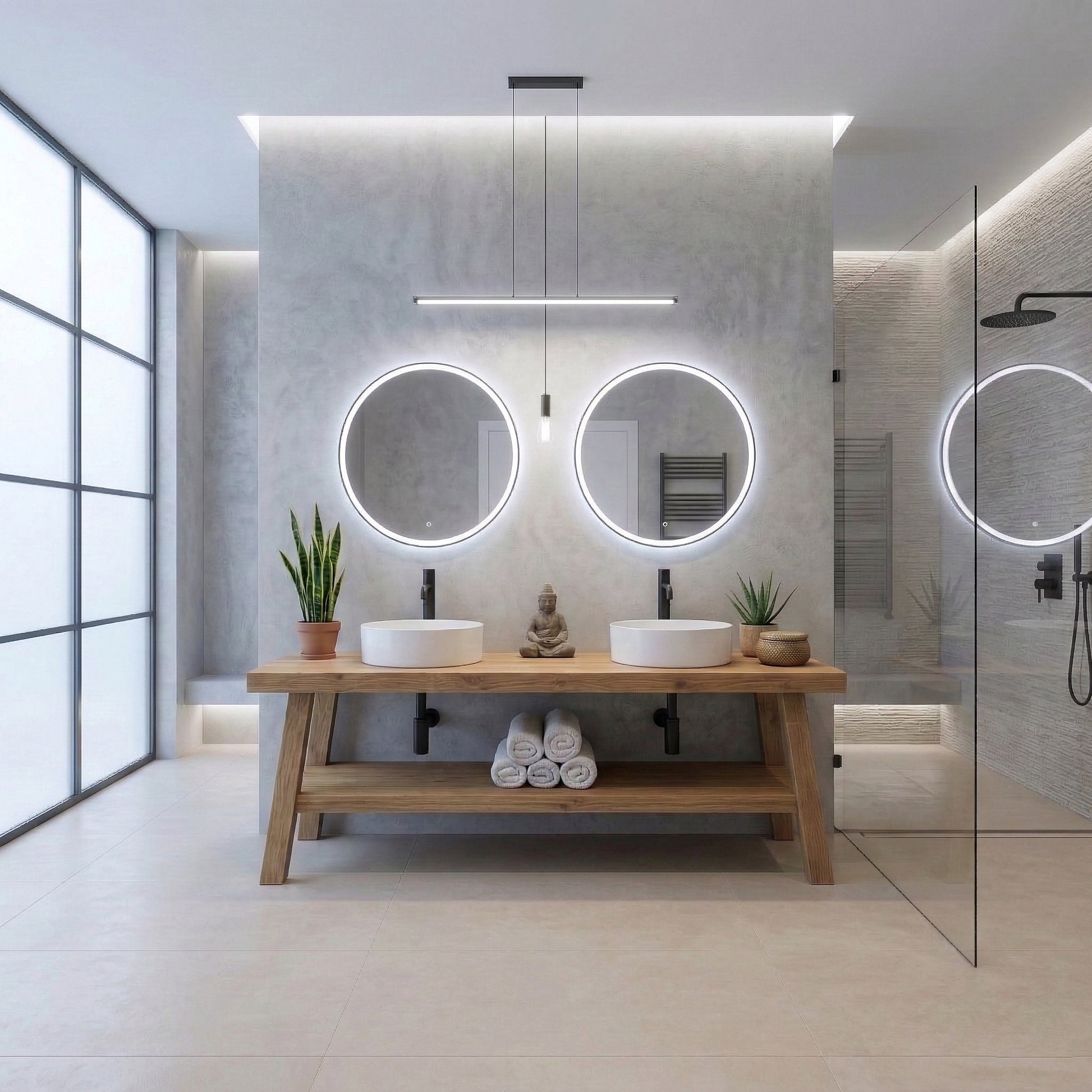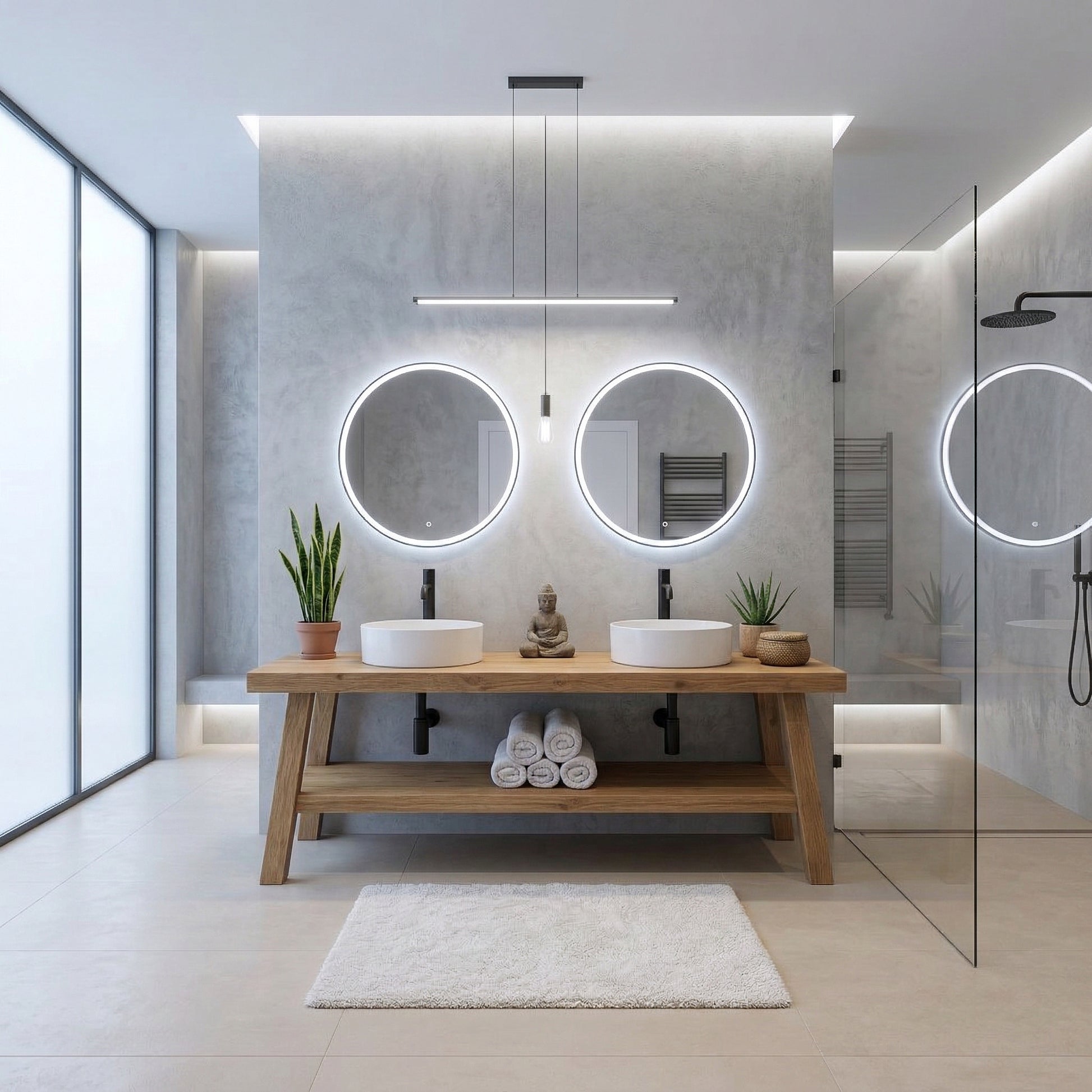 Open Shelf Design: The spacious bottom shelf is perfect for displaying plush towels or decorative baskets, enhancing the organic modern look of your bathroom.